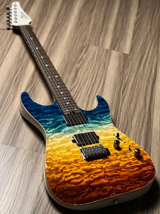 Soloking MS-1 Custom 24 HH Quilt FMN Roasted Flame Maple Neck in Beach Sunset Surf Fade JESCAR