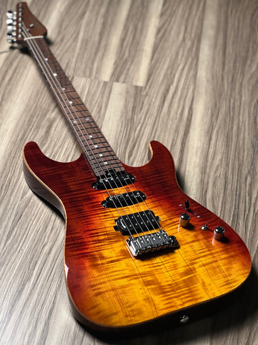 Soloking MS-1 Custom 22 HH Flat Top in Fire Wakesurf with One Piece Roasted Flame Maple Neck