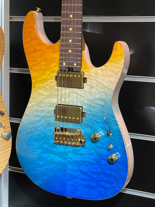 Soloking MS-1 Custom 24 HSS Quilt FMN in Turquoise Wakesurf JESCAR