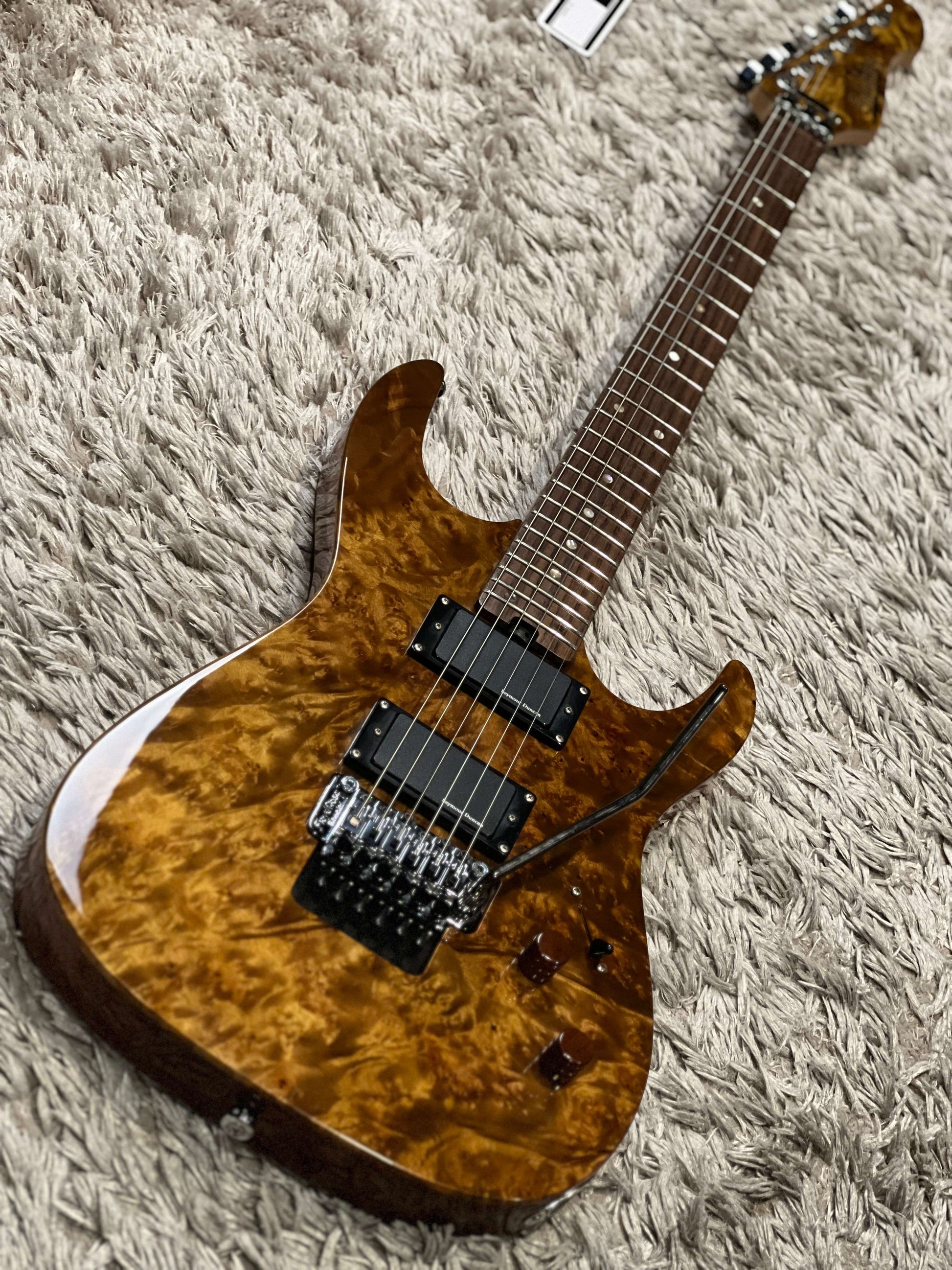 - Mahogany Body with Solid Selected 6mm Poplar Burl Top