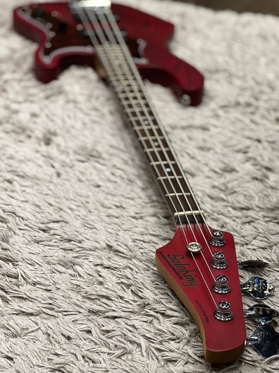 Soloking MJ-1 Custom Bass in Transparent Crimson Red with Roasted Maple Neck