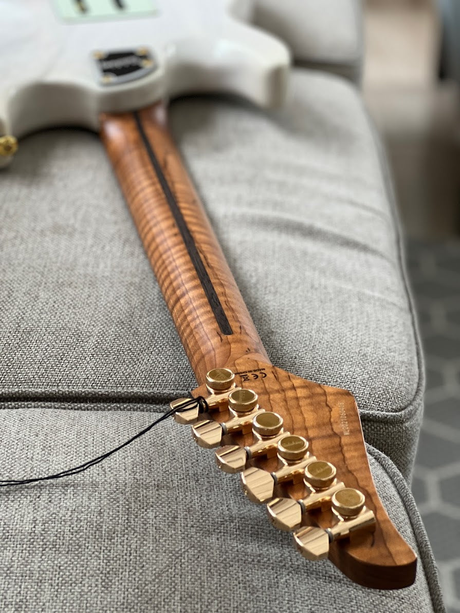 - One Piece Artist Grade Canadian Roasted Flame Maple Neck with Modern D Shape and 9.5 Radius
