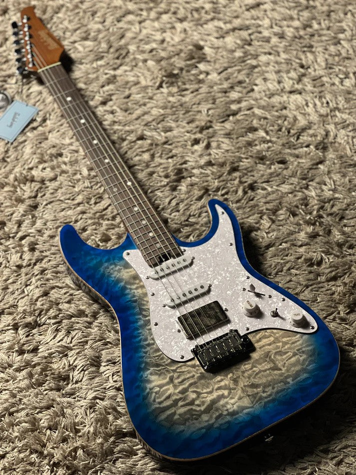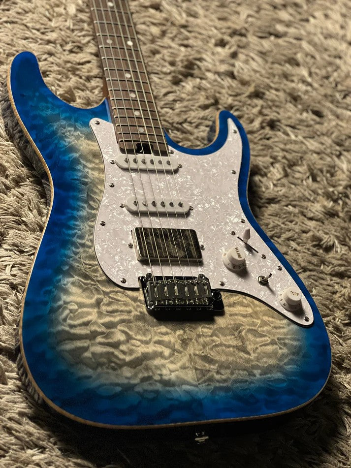 Soloking MS-1 Classic MKII Flat Top in Iridium Blue Burst with 5A Quilt Top Nafiri Special Run