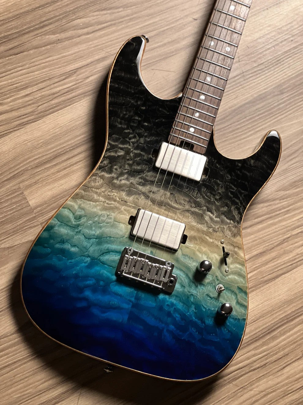 Soloking MS-1 Custom 22 HH Quilt with Rosewood FB in Ocean Storm Double Wipeout JESCAR