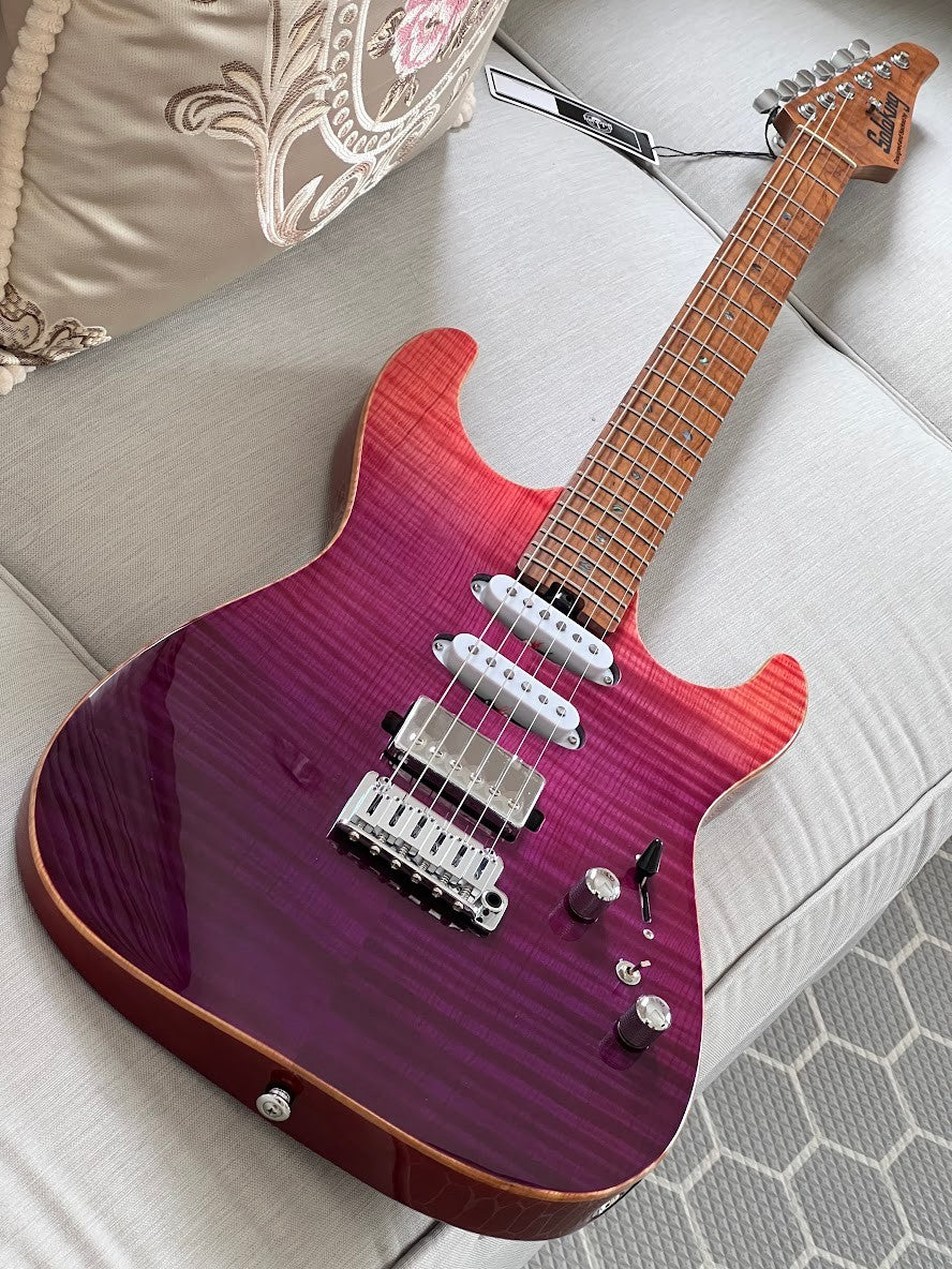 Soloking MS-1 Custom 22 HSS Flat Top Elite with One Piece Roasted Flame Neck in Purple Surf