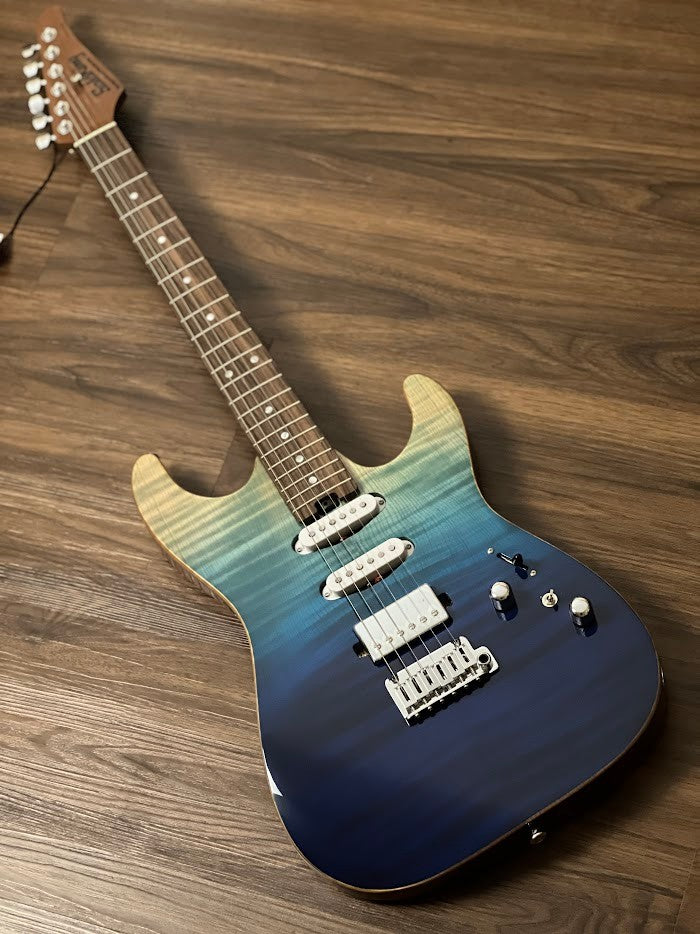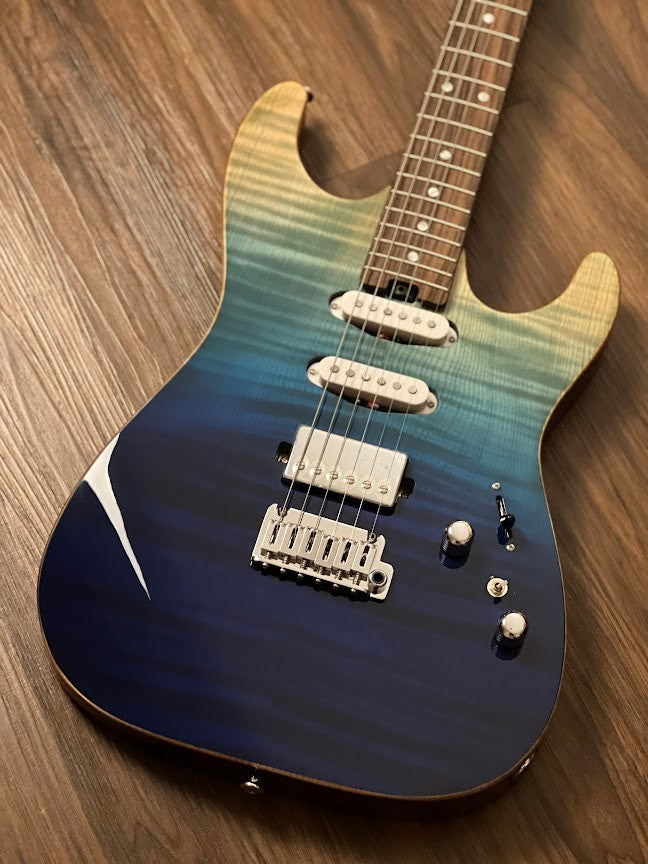 Soloking MS-1 Custom 22 HSS Flat Top Elite with Rosewood FB in Bora Blue Surf