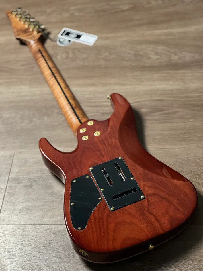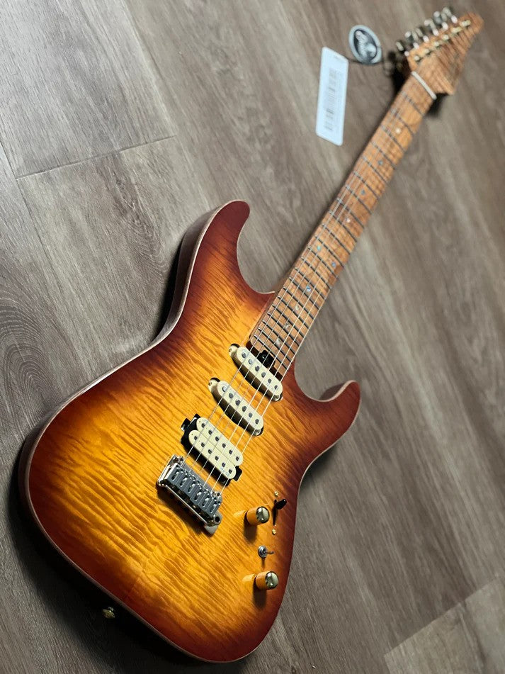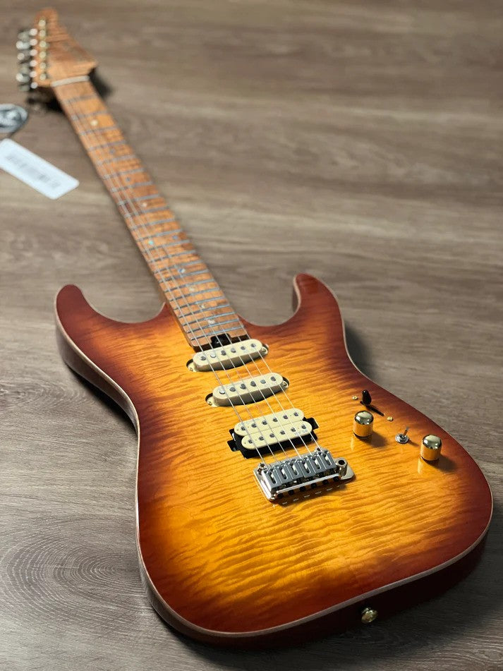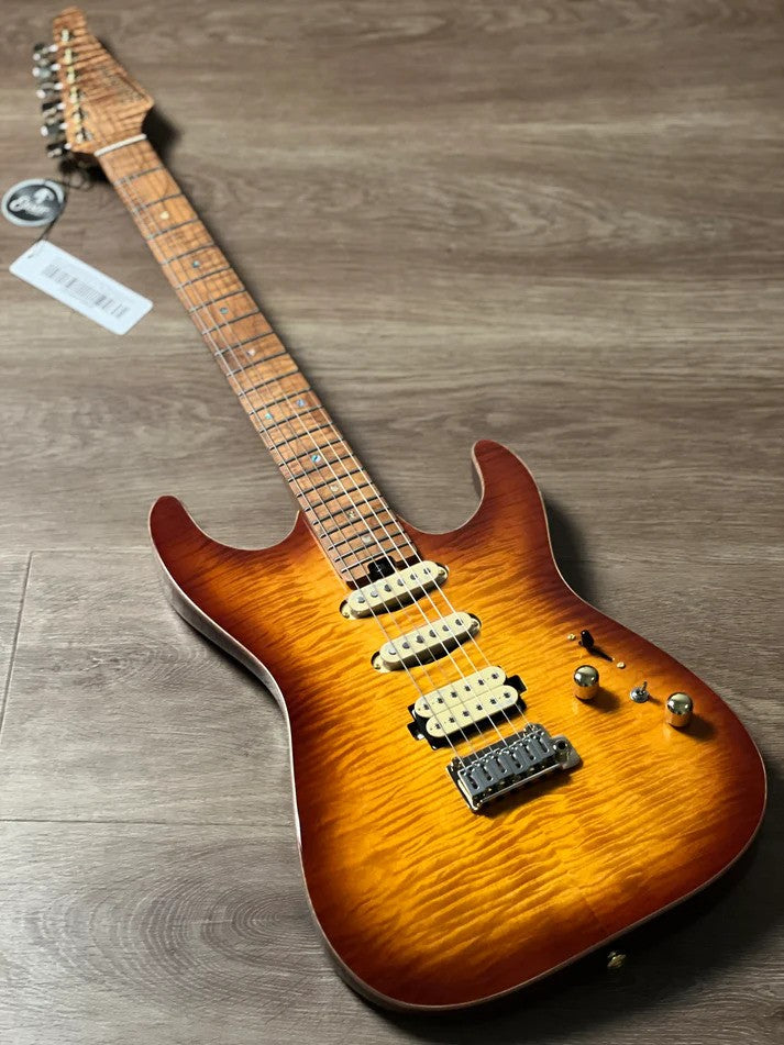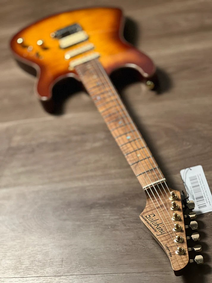 Soloking MS-1 Custom 22 HSS Flat Top One Piece Roasted Flame Neck with Entwistle PU in Bengal Burst Nafiri Special Run