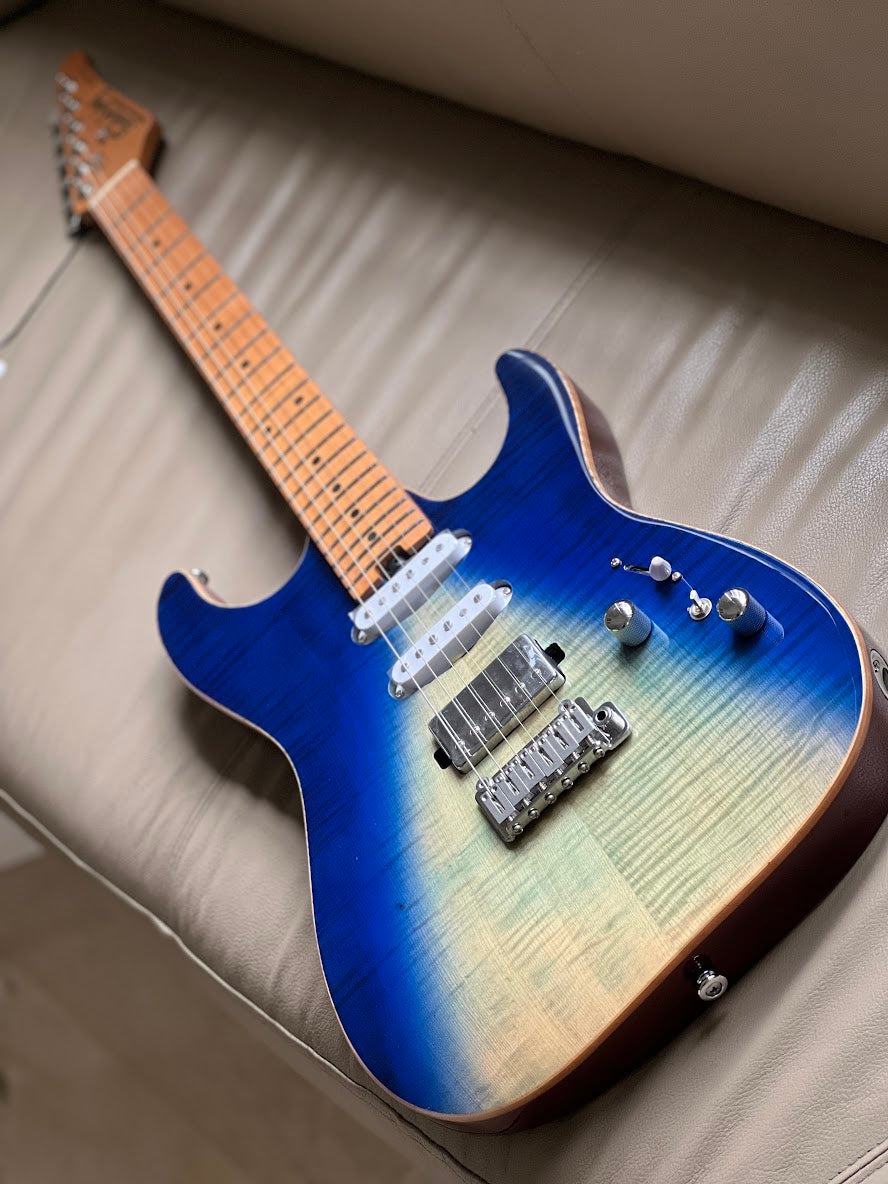 Soloking MS-1 Custom 22 HSS Flat Top with Roasted Maple FB in Blue Wakesurf