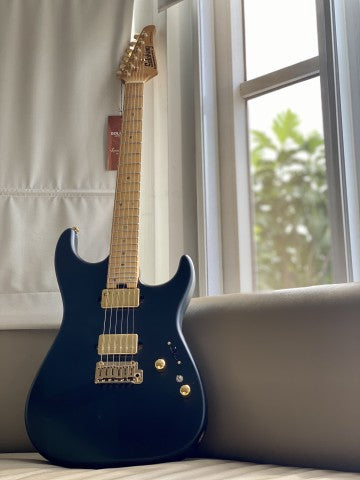 Soloking MS-1 Custom 24 HH in Satin Black Beauty Matte with Roasted Maple Neck and Gold Pickups