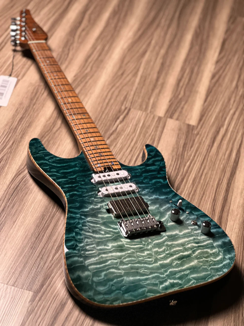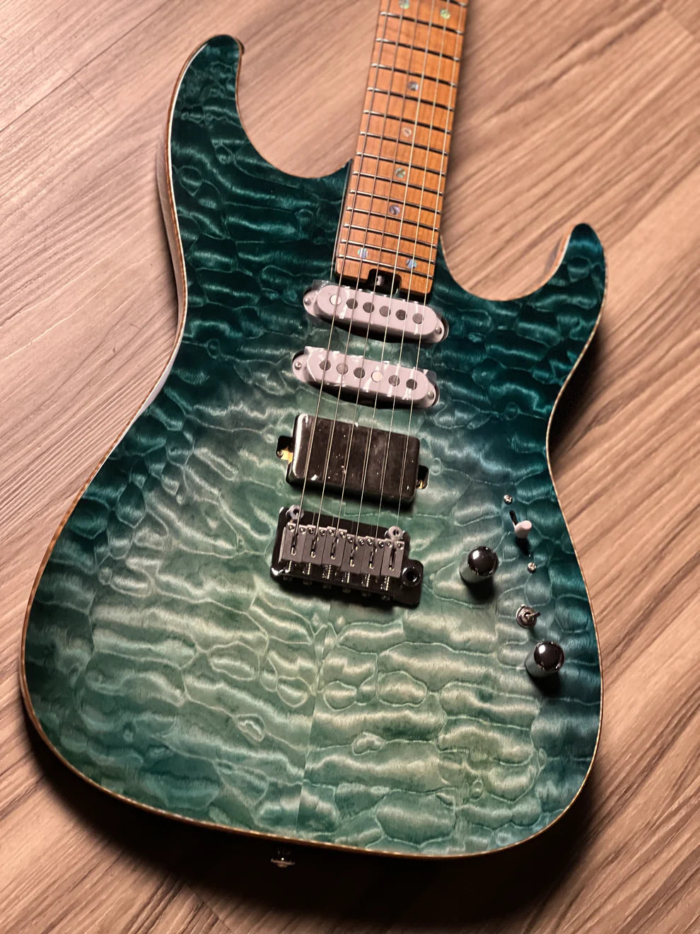 Soloking MS-1 Custom 24 HSS Quilt FMN in Turquoise Wakesurf JESCAR