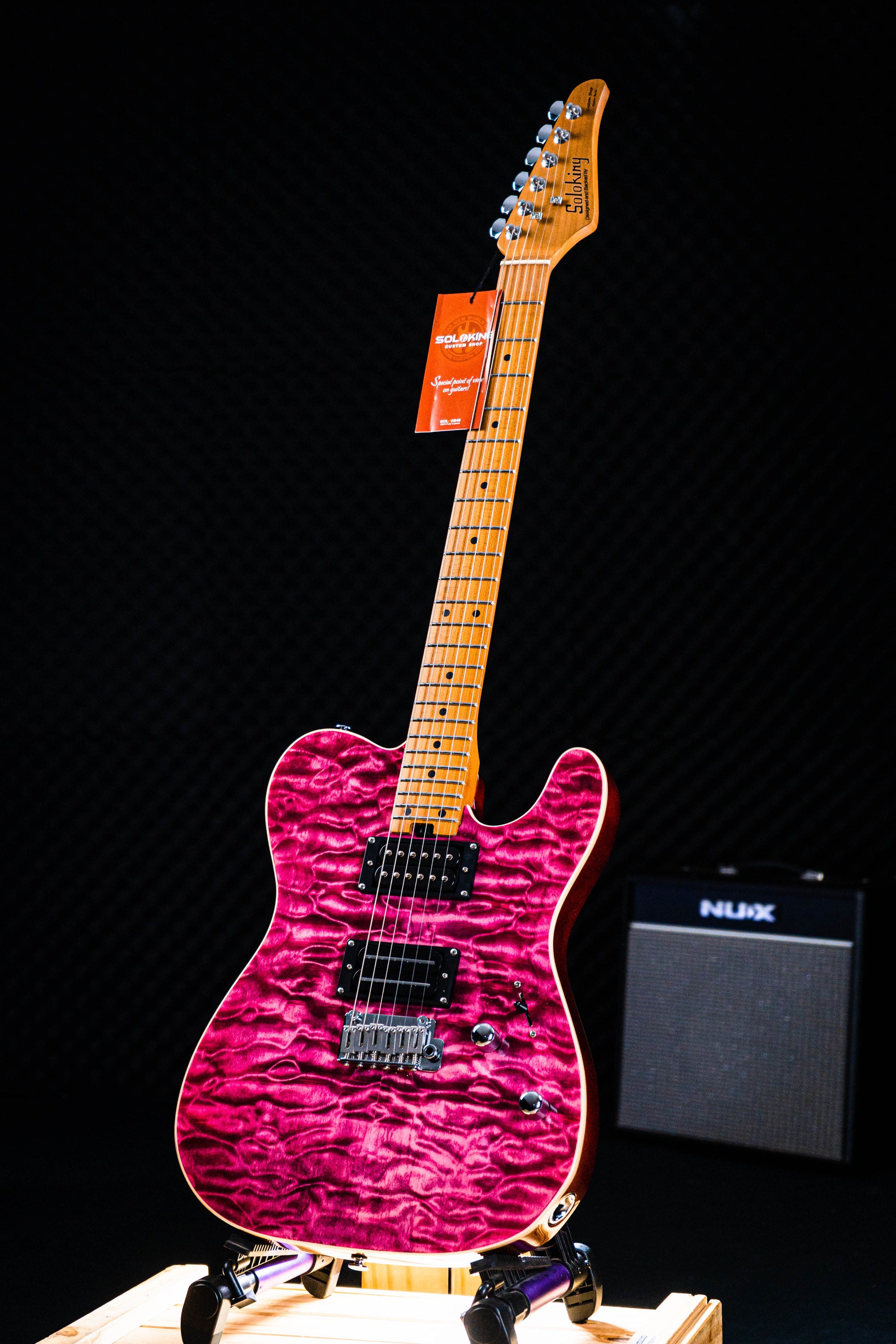 Soloking MT-1 Custom 24 Quilt in Seethru Magenta with Roasted Maple neck and FB