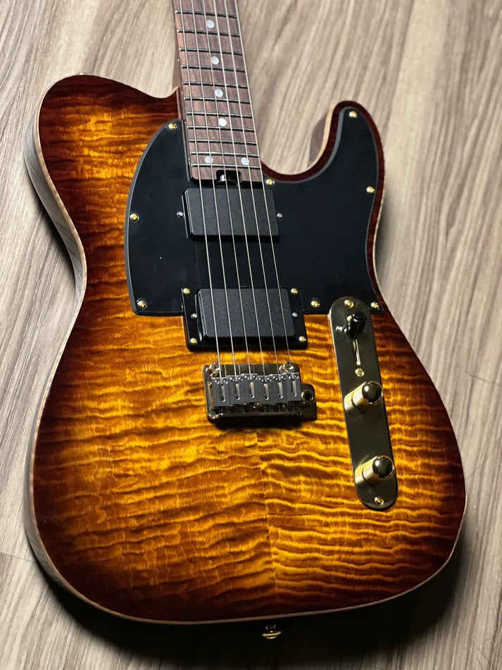 - Modern T African Okoume body with Top Natural Flame binding and AAAAA flame maple top