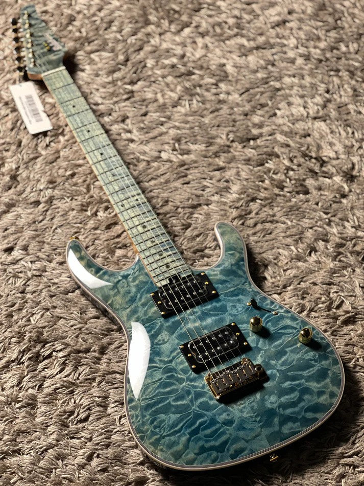 Soloking SM-22 HH QM Shredmaster with Blue Tinted Maple FB in Trans Maldives Blue