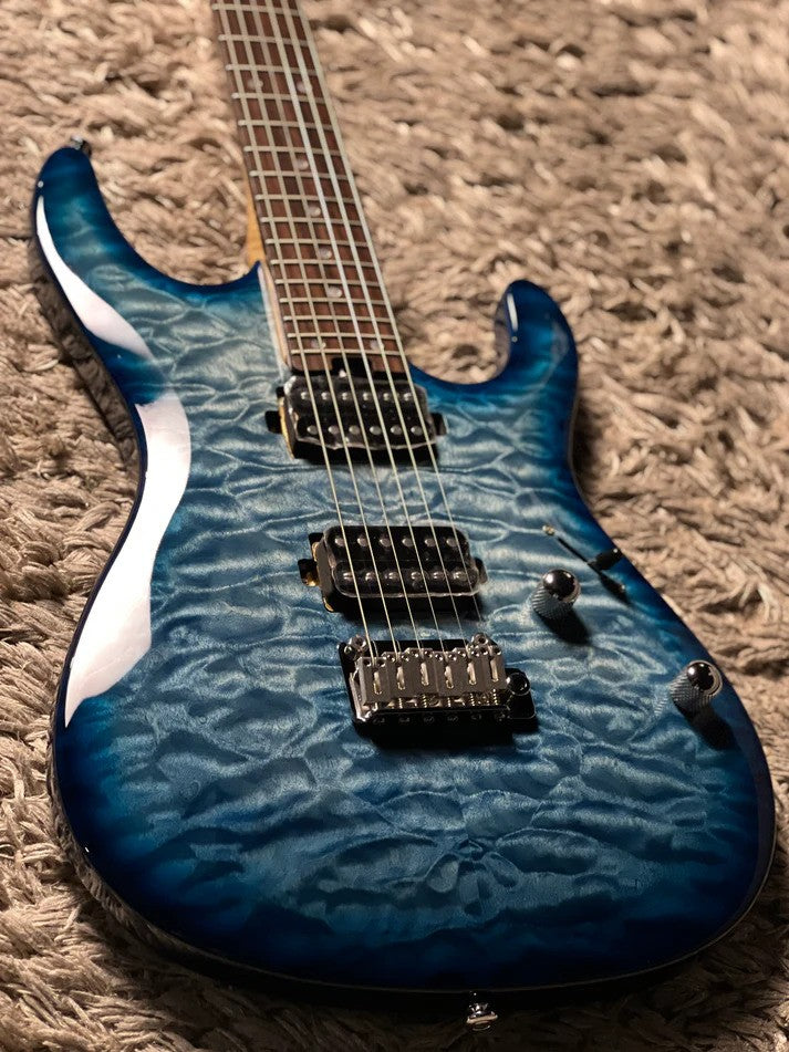 Soloking SM-24 HH QM Shredmaster with Rosewood FB in Ocean Blue Burst