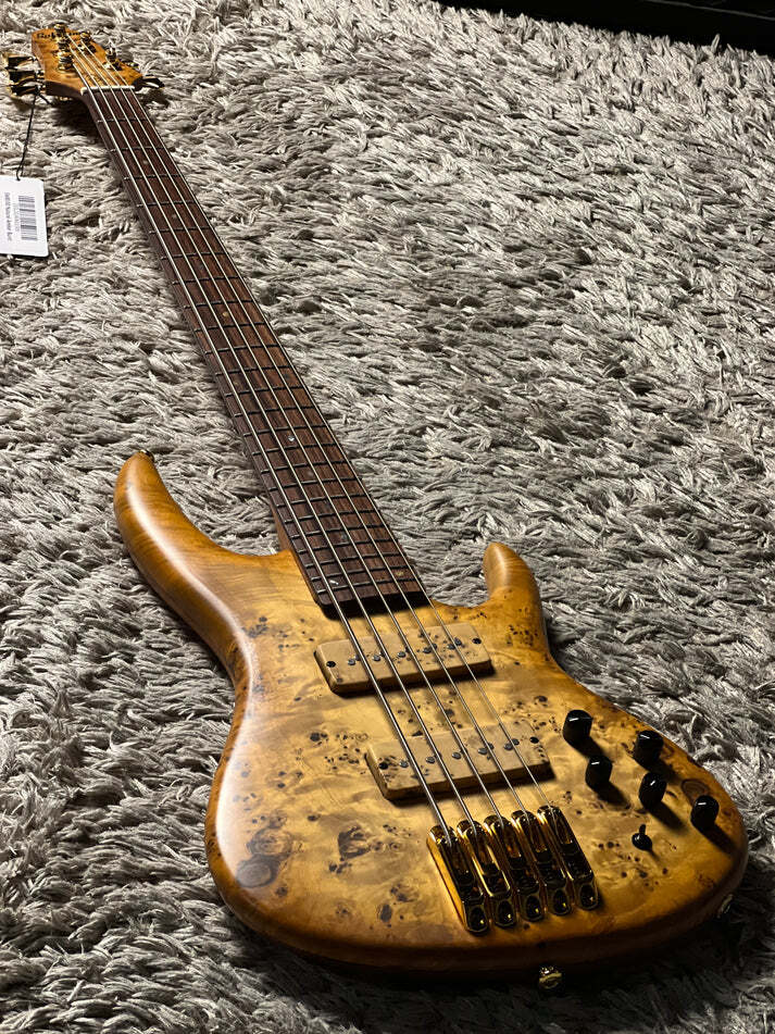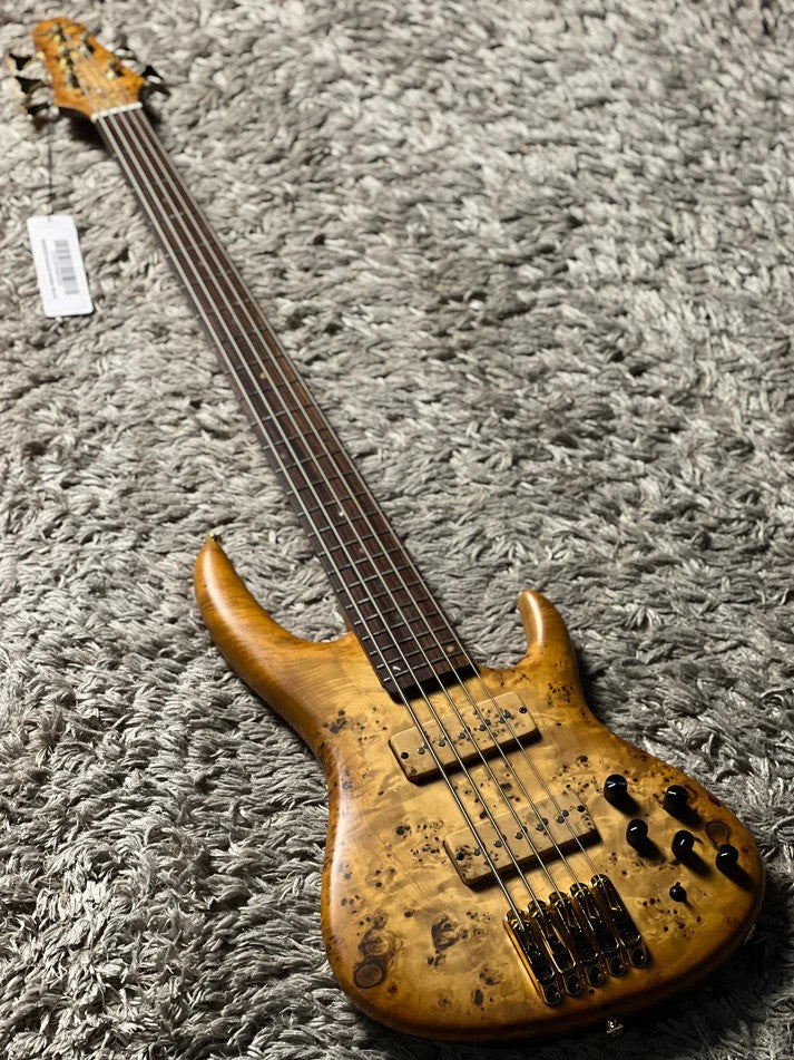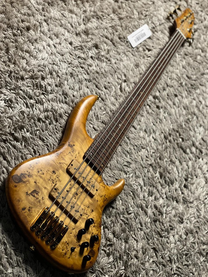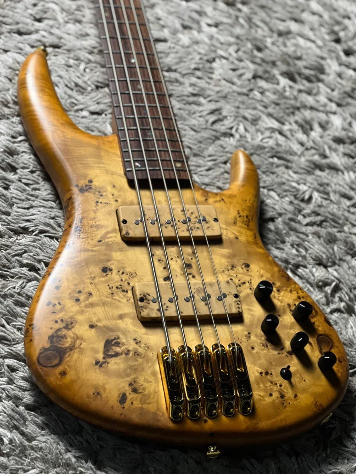 Soloking SWB550 Artisan Bass 5 String with Poplar Burl Top in Natural Amber Burst